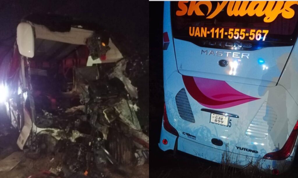 تفصیلات کے مطابق لاہور سے اسلام آباد جانے والی سکائی ویز بس تیز رفتار ٹرالر سے ٹکرا گئی۔ تصادم اتنا شدید تھا کہ بس کا اگلا حصہ مکمل طور پر تباہ ہوگیا۔